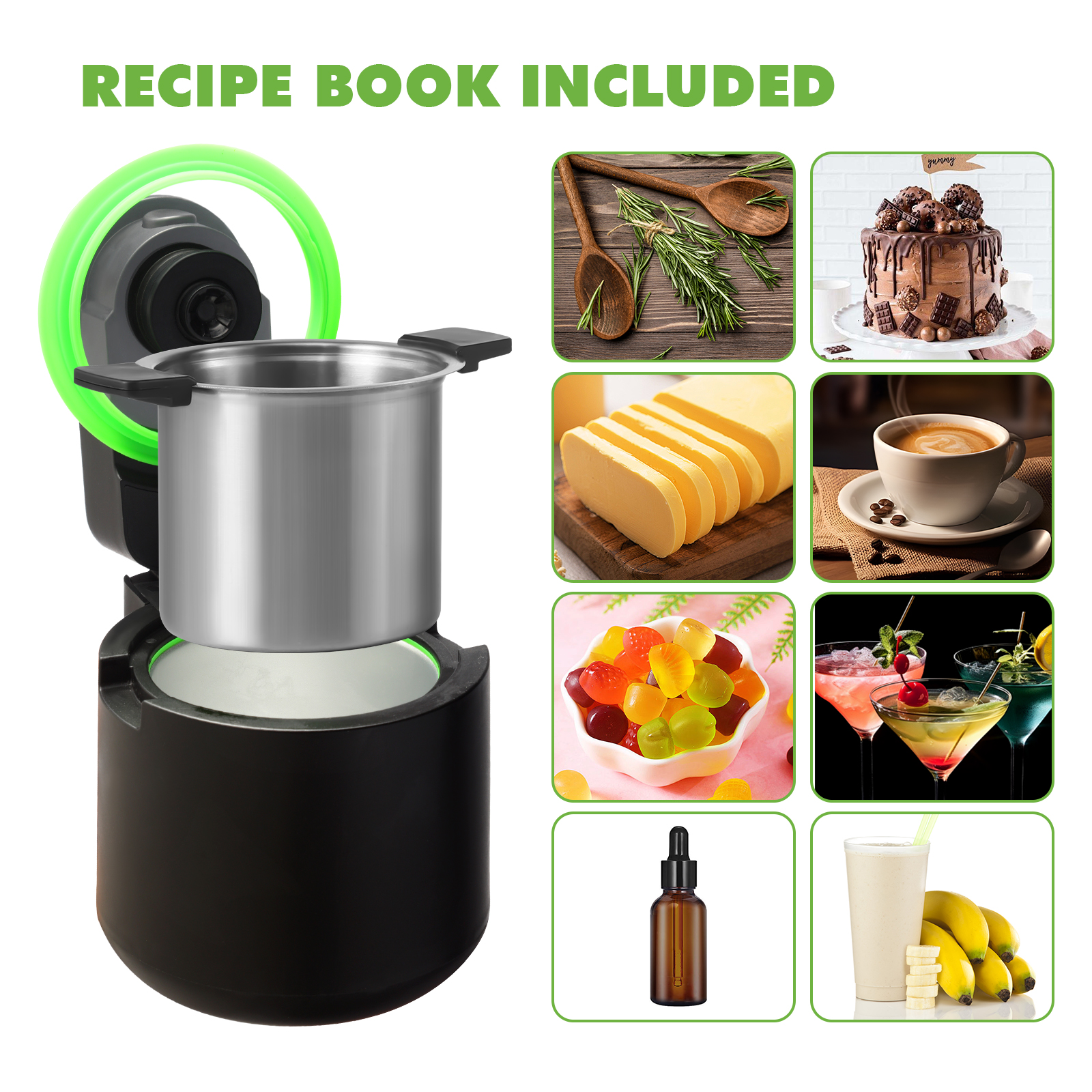 This versatile device combines three essential functions into one sleek, easy-to-use unit. Decarboxylate your herbs to activate their full potential, infuse oils and butters with your favorite botanicals, or create delicious gummies – all with the push of a button. The mixing function ensures even distribution, while the included accessories like the stainless steel mesh basket, silicone gummy molds, and oil & tincture press make the process seamless. With precise temperature control and automatic shut-off, you can achieve consistent results every time. Elevate your culinary creations, explore the benefits of herbal remedies, or simply indulge in flavorful treats – the possibilities are endless with this innovative machine. Explore the included herbal recipe book for inspiration and unlock a world of natural goodness